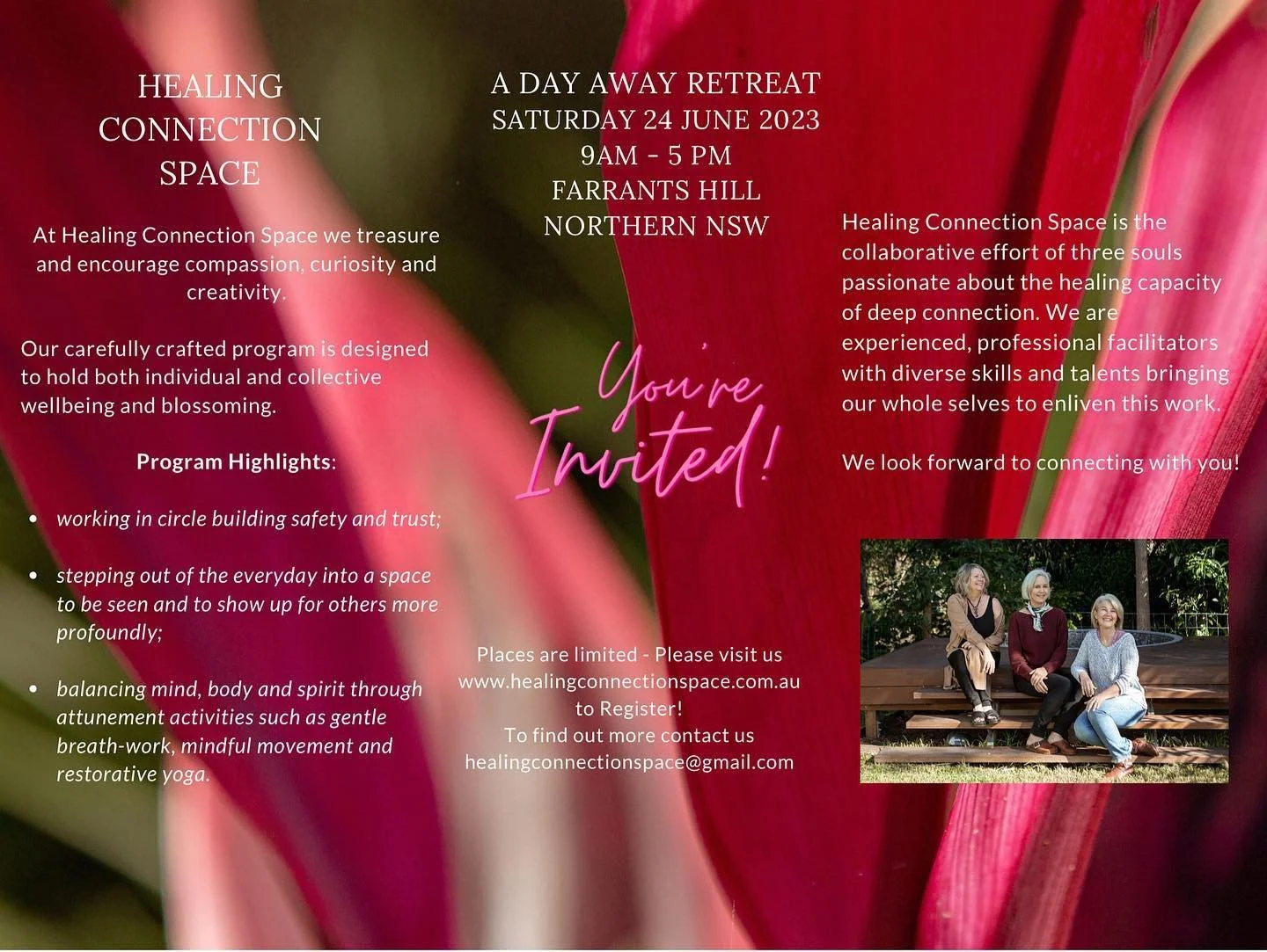 In conversation, presence and through the exploration and sharing of our unique gifts and talents - we invite you into Healing Connection Space for this regular event.